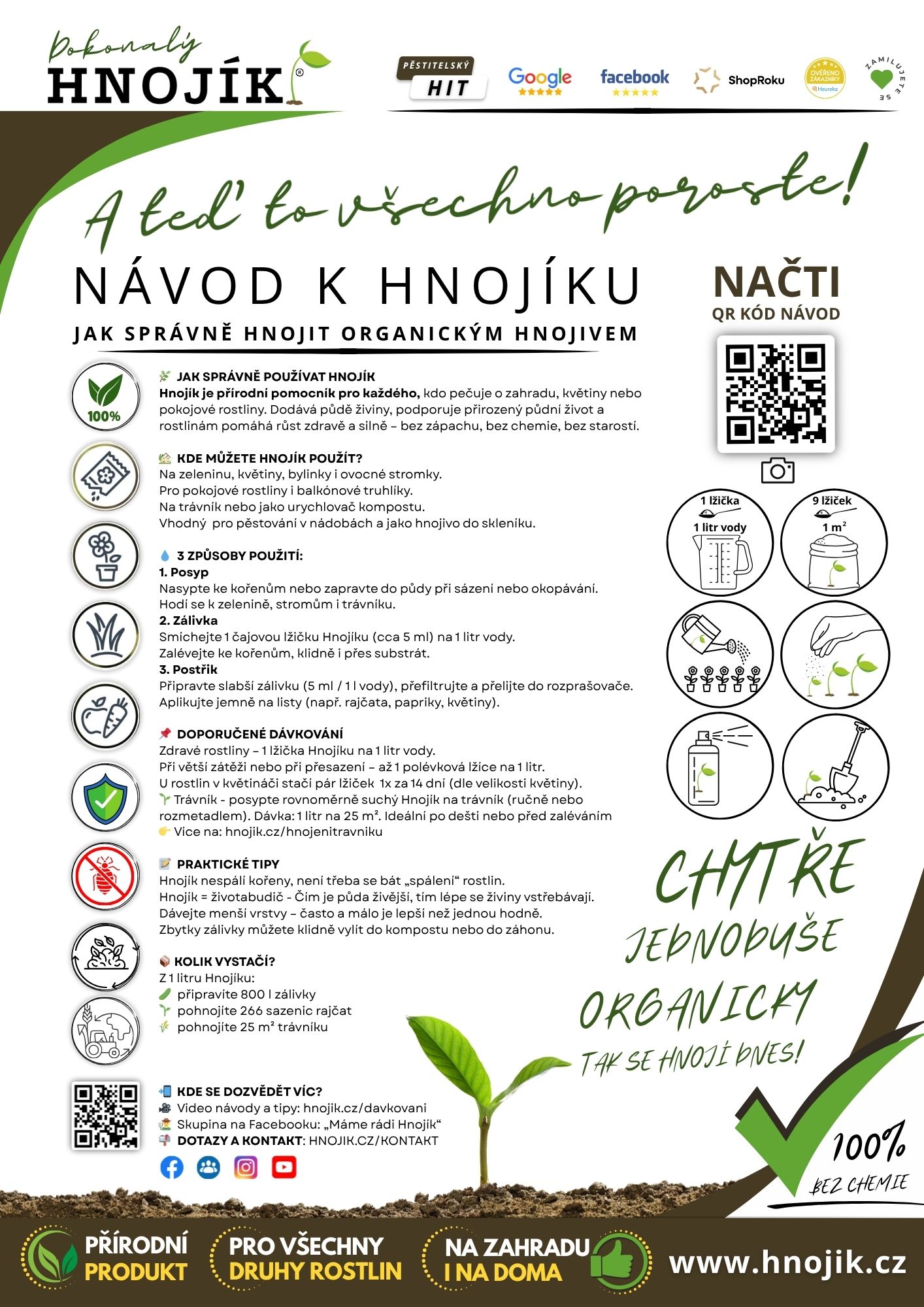 Množství instruktivních videí věnujících se použití Hnojíku najdete na naší stránce „Dávkování„. Kromě toho plánujeme v průběhu roku přidat ještě jedno obecné propagační video, které vám poskytne další možnost, jak efektivně propagovat Hnojík mezi vašimi zákazníky.